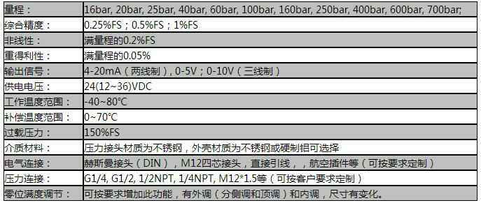 额定量程:0….16至0….700bar压力范围的测量